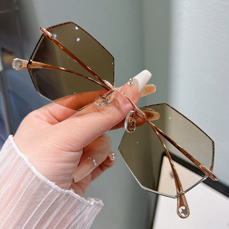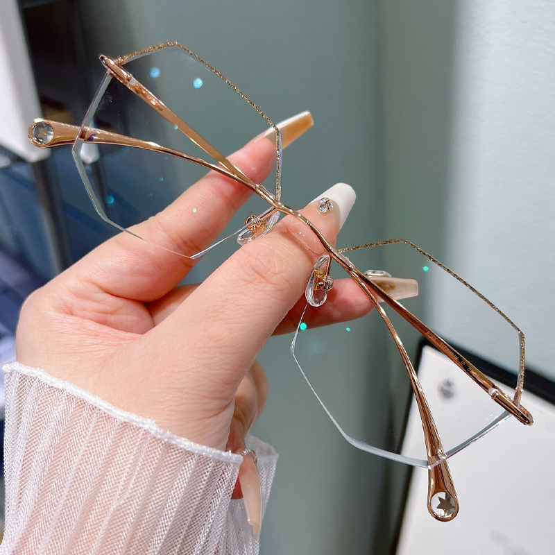 DESCRIPTIONKeep the focus on you in these unique geometric rimless glasses. Slim metal temples add glamorous charm and a modern touch to these glasses. Adjustable nose pads increase wearing comfort.