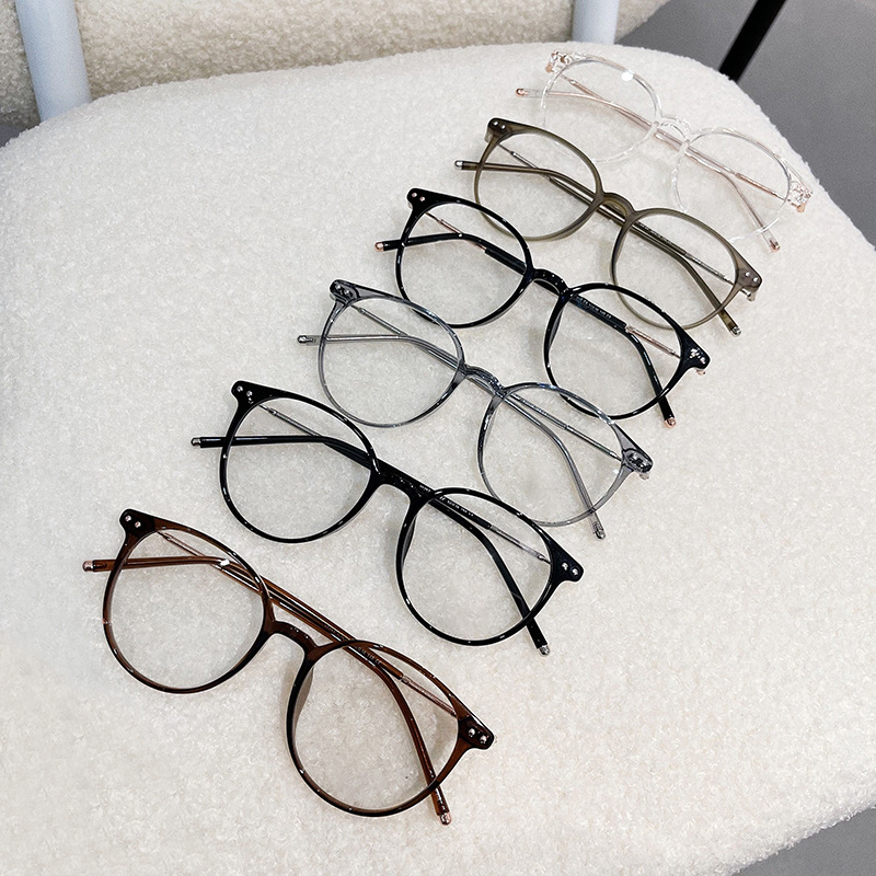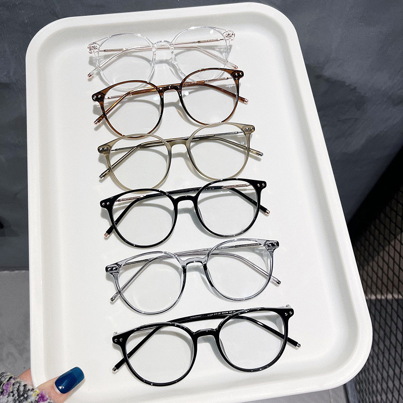 Elevate your everyday look with these trendy round glasses, crafted from featherlight TR90 for all-day comfort! The one-piece nose pads offer a snug, pressure-free fit, while the slim, tapered temple arms add a touch of elegance. Accented with sleek metal rivets on both sides of the frame, they blend timeless vintage charm with modern edge.