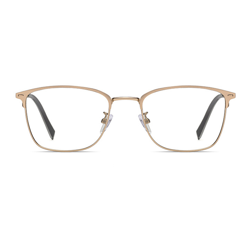From its rounded browline to its soft angles, this gold square frame is full of unpredictable style. Metal construction makes this frame flexible, comfortable, and lightweight. Adjustable nose pads and soft temple tips provide a comfortable fit.