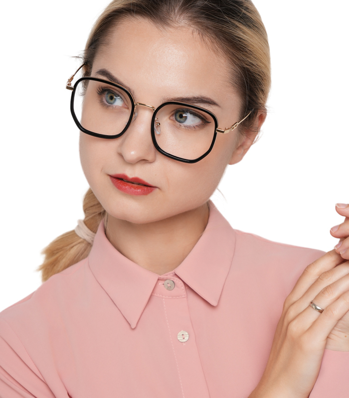 The irregular design is the top choice for those who love an effortless, on-trend look. TR 90 and metal construction make this frame durable, flexible, and lightweight, featuring in any style. Metal bridge, subtle detailed cut-out slim arms, and paddle-style temple tips add a touch of boldness and uniqueness to this frame. Adjustable nose pads make you enjoy all-day comfort.