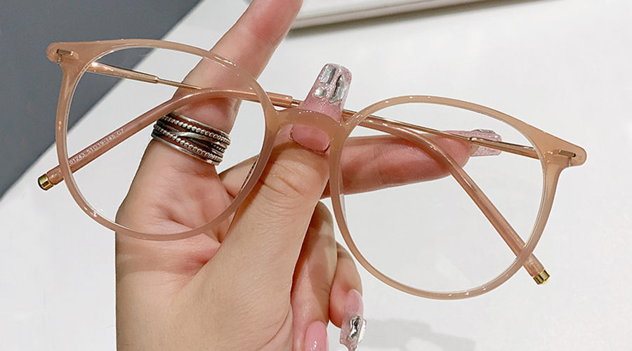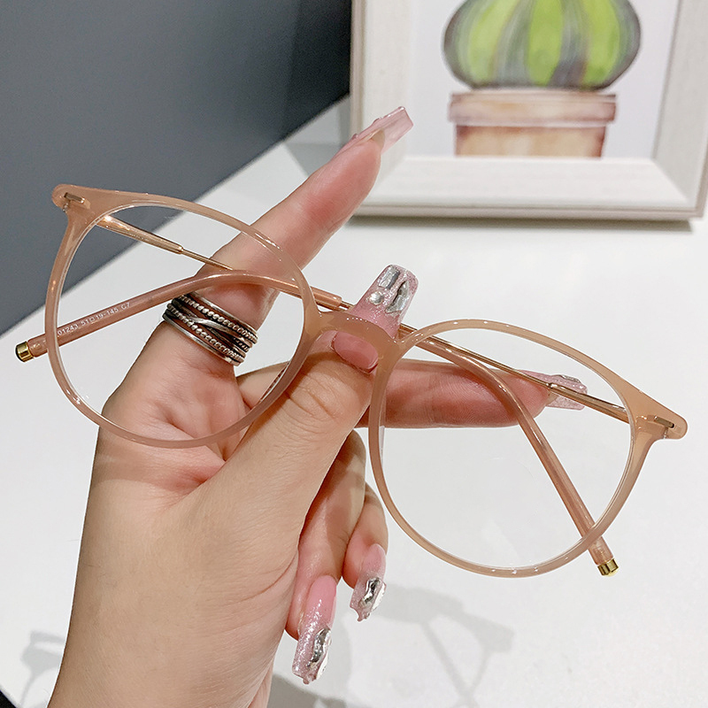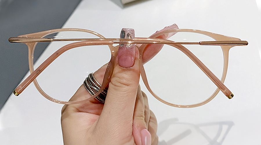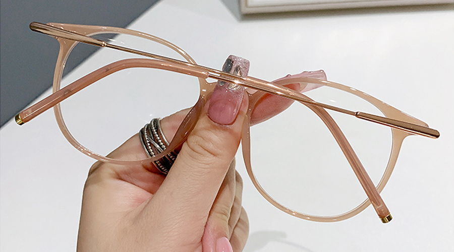 Round Oversized Fashion Eyeglasses: A sleek fusion of premium TR90 and metal for durability with a lightweight feel. Features one-piece nose pads for pressure-free all-day comfort and slim temple arms that add understated elegance—perfect for elevating any everyday look.
