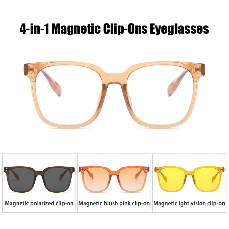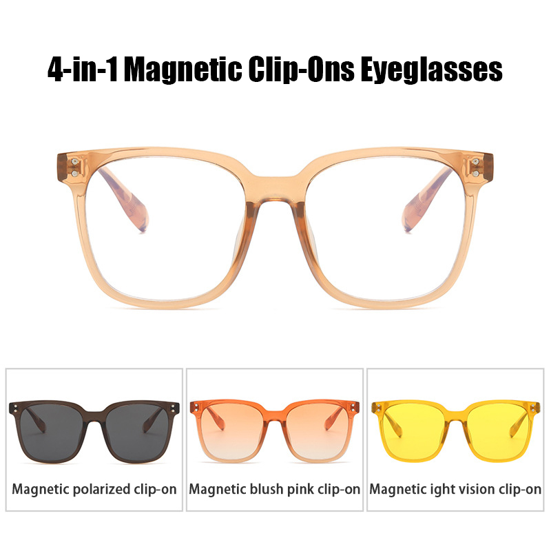 Upgrade your vision effortlessly with our 4-in-1 Magnetic Clip-Ons Eyeglasses.—the ultimate all-in-one eyewear solution. Switch seamlessly between prescription lenses, TAC polarized sunglasses, blush pink sunglasses and night vision lenses with a simple magnetic snap. No more carrying multiple pairs—just sleek, adaptable style for every moment.
