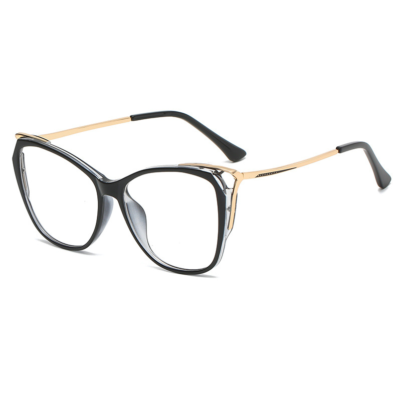 DESCRIPTIONGlamour is the name of the game in these chic cat-eye glasses. The kitty ear accents on the outer corners add a playful touch to this trendy frame. Made from lightweight, glossy TR90 & metal material, this look will add flare to any outfit and can be worn all day.