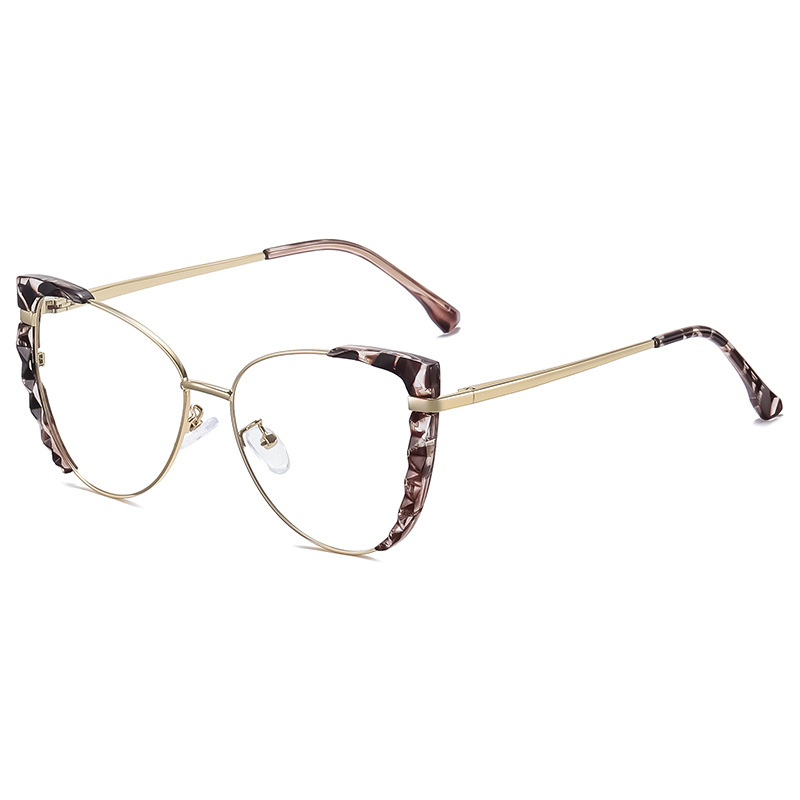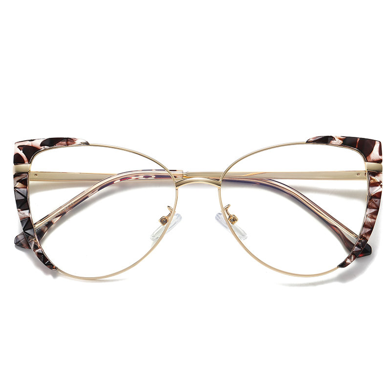 DESCRIPTIONThese metal cat-eye glasses will add style to any look. This frame is made from glossy TR90 & metal and features a simplistic, surprisingly comfortable design. The flexible frame is fitted with spring hinges and adjustable nose pads for added comfort.