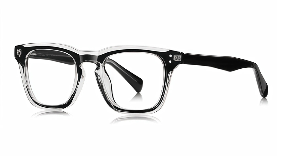 Sleek square frame crafted from lightweight TR90. Features integrated nose pads for all-day comfort and spring hinges for a flexible, secure fit. Simple, durable and perfect for daily wear.