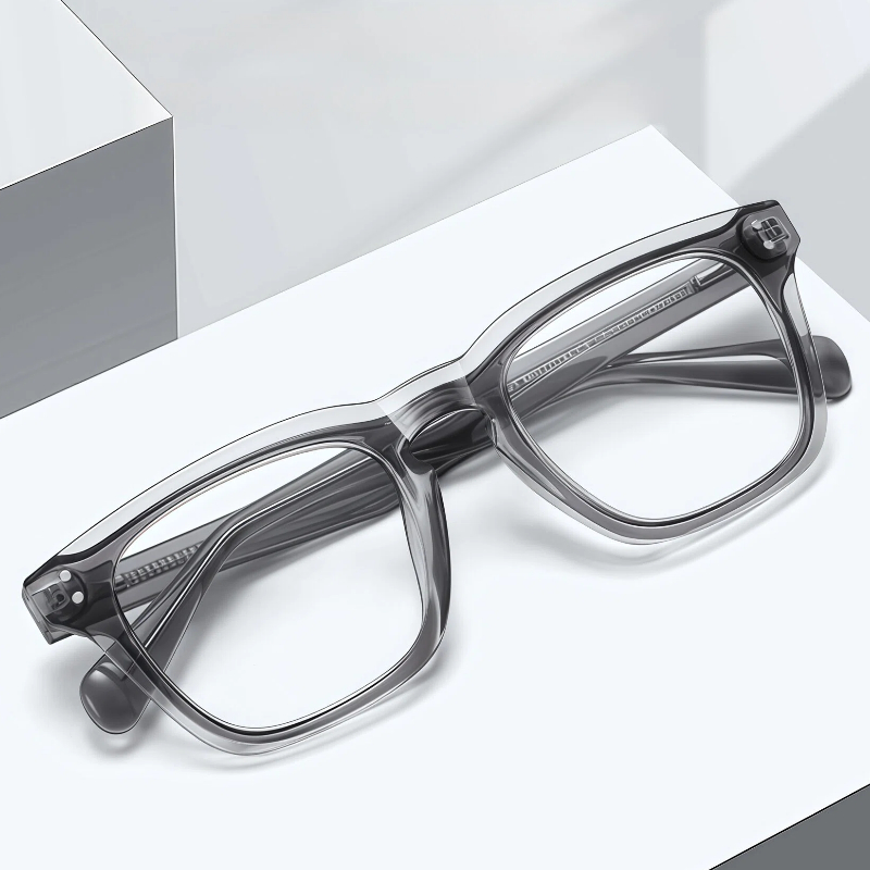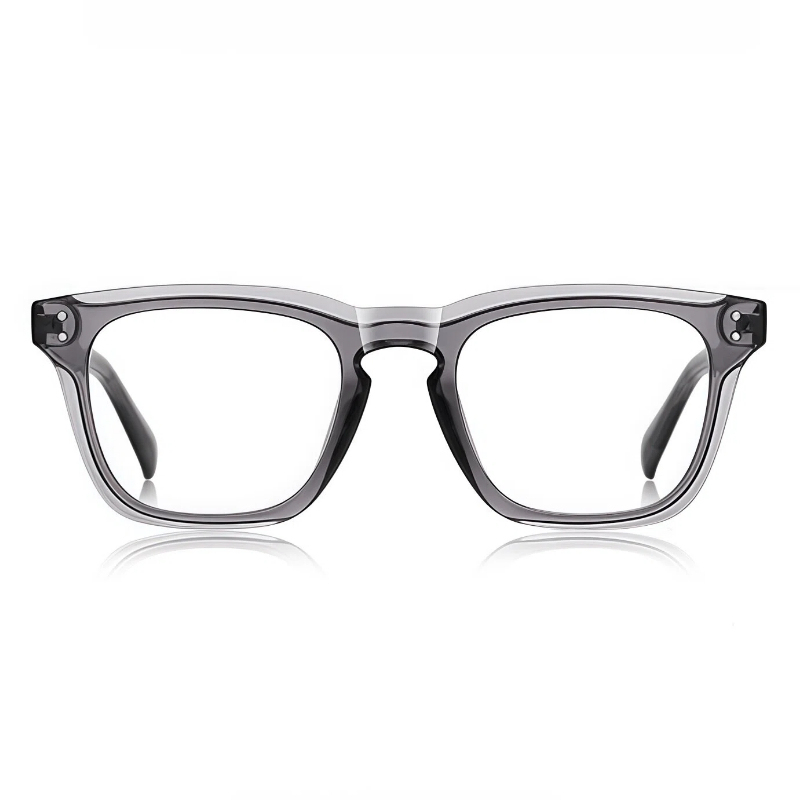 Sleek square frame crafted from lightweight TR90. Features integrated nose pads for all-day comfort and spring hinges for a flexible, secure fit. Simple, durable and perfect for daily wear.
