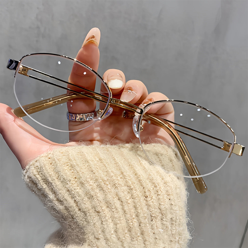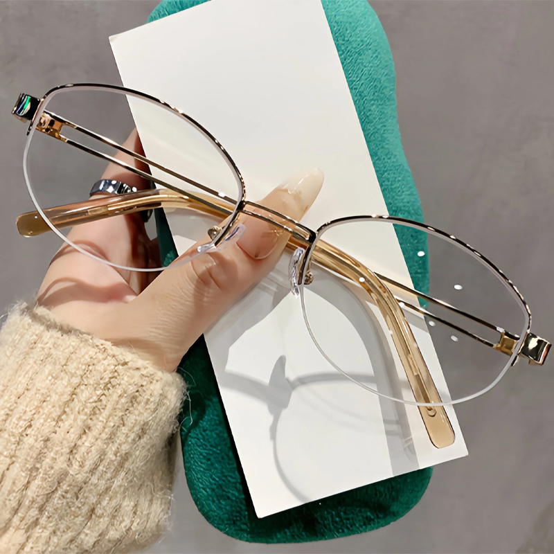 DESCRIPTIONShow your youth and fashion with these semi-rimless glasses. The frame's premium metal construction makes it flexible, comfortable, and lightweight. Adjustable nose pads make you enjoy all-day comfort.