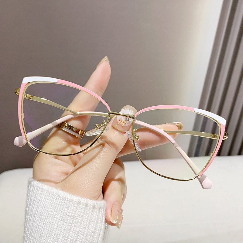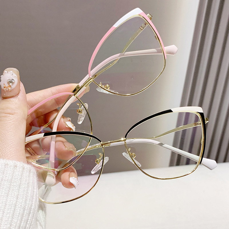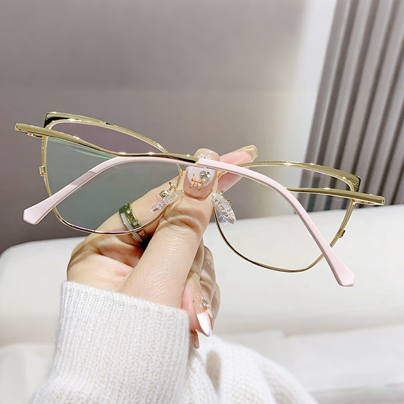 DESCRIPTIONTry these chic cat-eye glasses on today! With shiny gold decorations and a stylish cat-eye shape, this durable frame is trendy and comfortable. Adjustable nose pads make you enjoy all-day comfort.