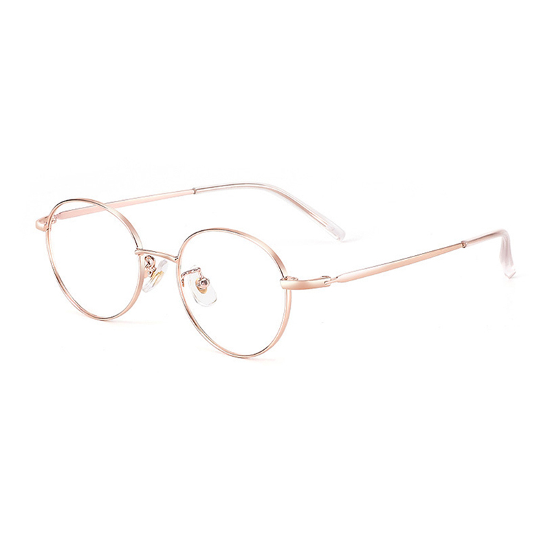 DESCRIPTIONMake a simple statement in these chic round glasses. Made from β-titanium material, this frame is ultralight, durable, and wear-resisting. Comfort features like adjustable silicone nose pads and soft plastic temple tips complete the look. These glasses are ideal for women with small faces.