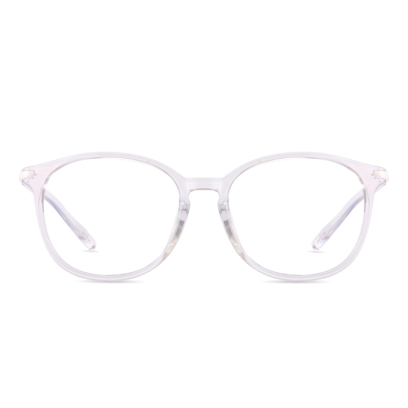 An easy oval frame coming with various options of hues! Dionysus offers clear, pink, pattern, black, tortoise, purple, and clear orange. Those colors brighten your skin and the frame greatly pops your face. It is made of TR, and the parcel includes a frame, lenses, cleaning cloth, and glasses case.