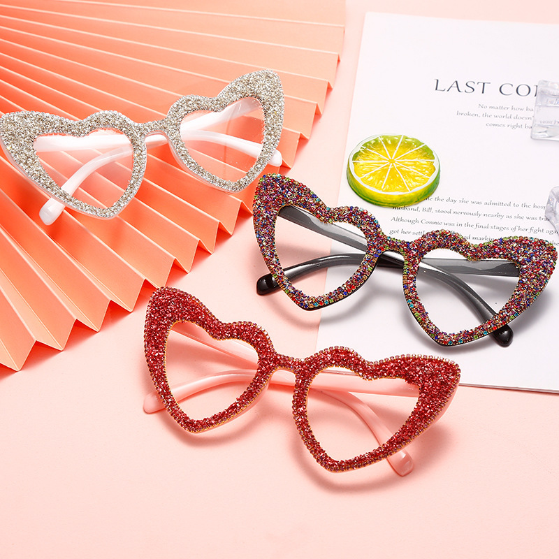 DESCRIPTIONLove at first sight! The hand-made glitters on the frame add so much modern and luxurious flavor to the heart glasses. Made from glossy TR90 material, the lightweight frame features a bold, simplistic design that is surprisingly lightweight and comfortable.