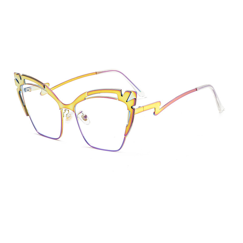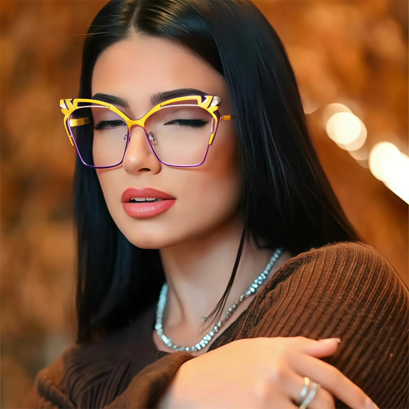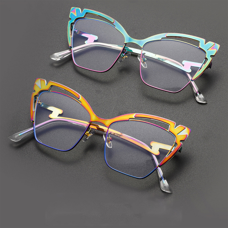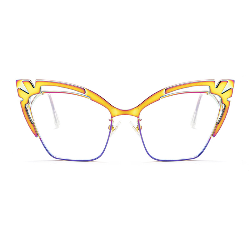 DESCRIPTIONTurn heads with these statement-making cat-eye eyeglasses! Featuring a vibrant iridescent gradient on oversized frames and sleek metal accents, these glasses blend retro glam with modern edge. Perfect for adding a pop of color to any outfit—whether you're brunching or street-style strolling.