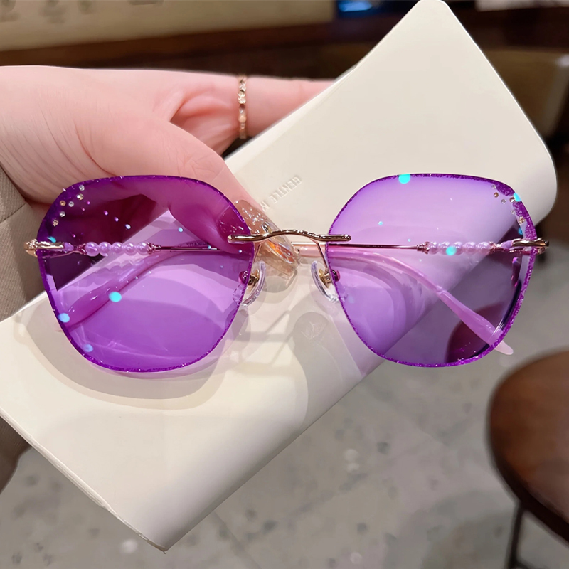 DESCRIPTIONDreamy is a pair of rimless glasses unmatched in glamour and finesse. These glasses come in Titanium and irregular rimless lenses. They are sturdy, ultra-lightweight, and corrosion-resistant. The glitters on the lens edges and pearl decoration on the arms give this frame a mysterious style.