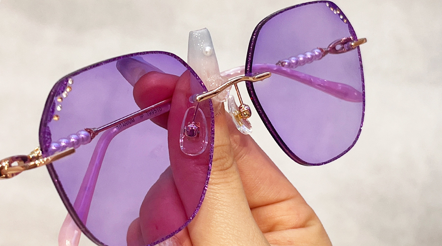 Dreamy is a pair of rimless glasses unmatched in glamour and finesse. These glasses come in Titanium and irregular rimless lenses. They are sturdy, ultra-lightweight, and corrosion-resistant. The glitters on the lens edges and pearl decoration on the arms give this frame a mysterious style.