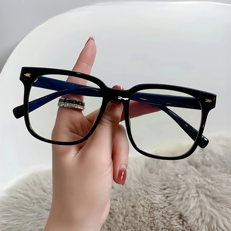 Elevate your everyday look with this chic, oversized square frame. Crafted from ultra-light, durable TR90 material, they feature integrated nose pads for a secure, comfortable fit and sleek metal rivet details on the frame for a modern touch. Designed to flatter all face shapes, these glasses are the perfect blend of minimalist style and functional design, ideal for both casual wear and professional settings.