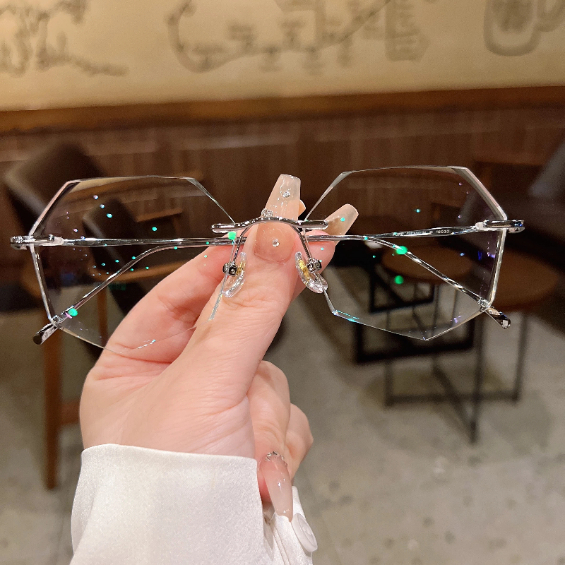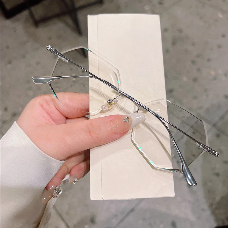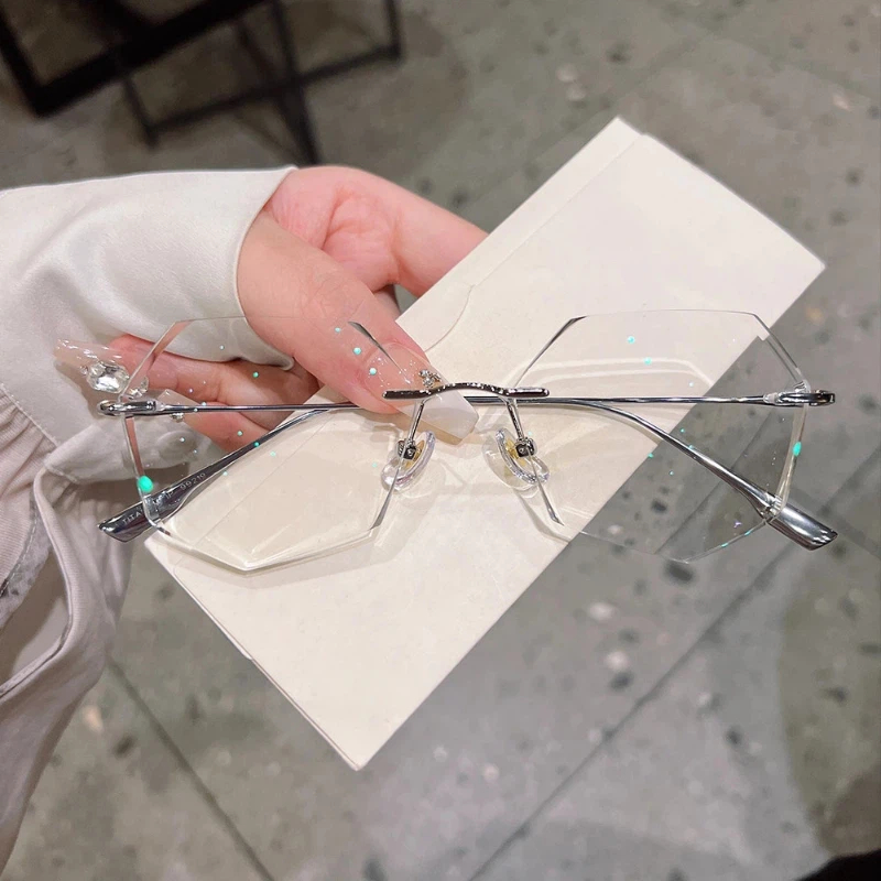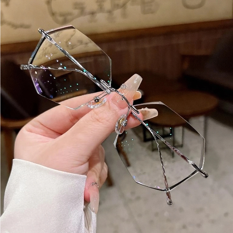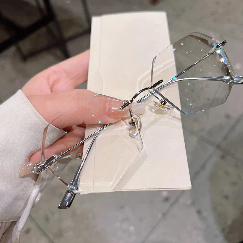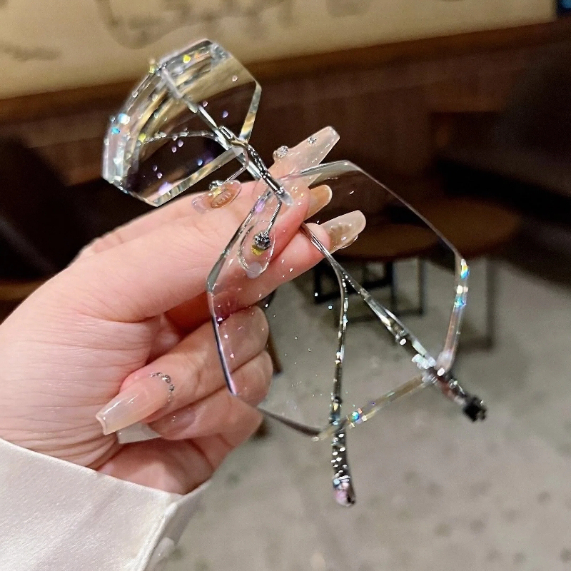 DESCRIPTIONCrafted from ultra-lightweight, hypoallergenic silver titanium, these geometric rimless eyeglasses deliver exceptional durability, corrosion resistance, and all-day comfort. The crystal-cut faceted lenses create a sparkling, glamorous effect, while adjustable nose pads ensure a personalized, secure fit. The slender titanium frame offers a sleek, modern look, combining luxury, functionality, and feminine style in one stunning design.⏰It typically takes 7 business days to process prescription rimless lenses.