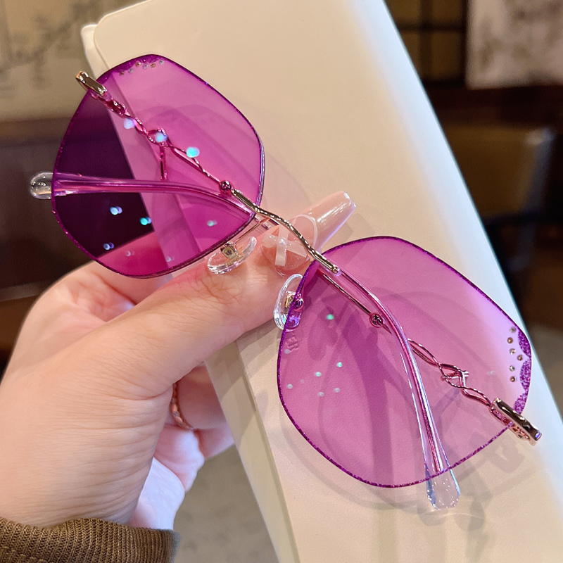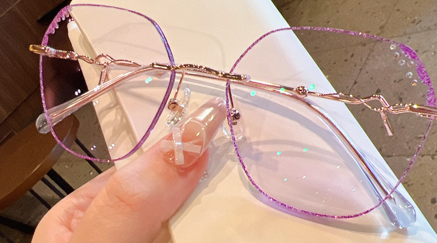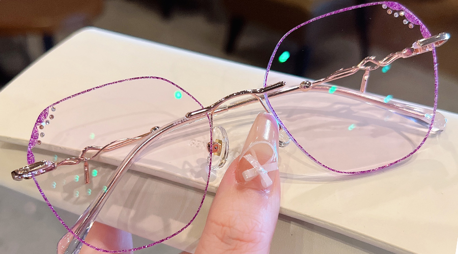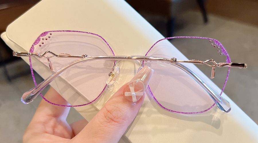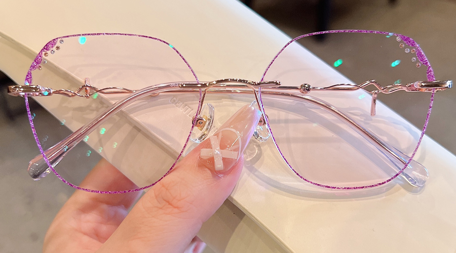 DESCRIPTIONCrafted from aluminum alloy, Frozen is shiny, lightweight, and corrosion-resistant, featuring subtle purple rhinestone details on the upper lens. Slim, wavy temples make this frame more stylish and sophisticated. Adjustable nose pads and transparent temple tips provide added comfort.⏰It typically takes 7 business days to process prescription rimless lenses.