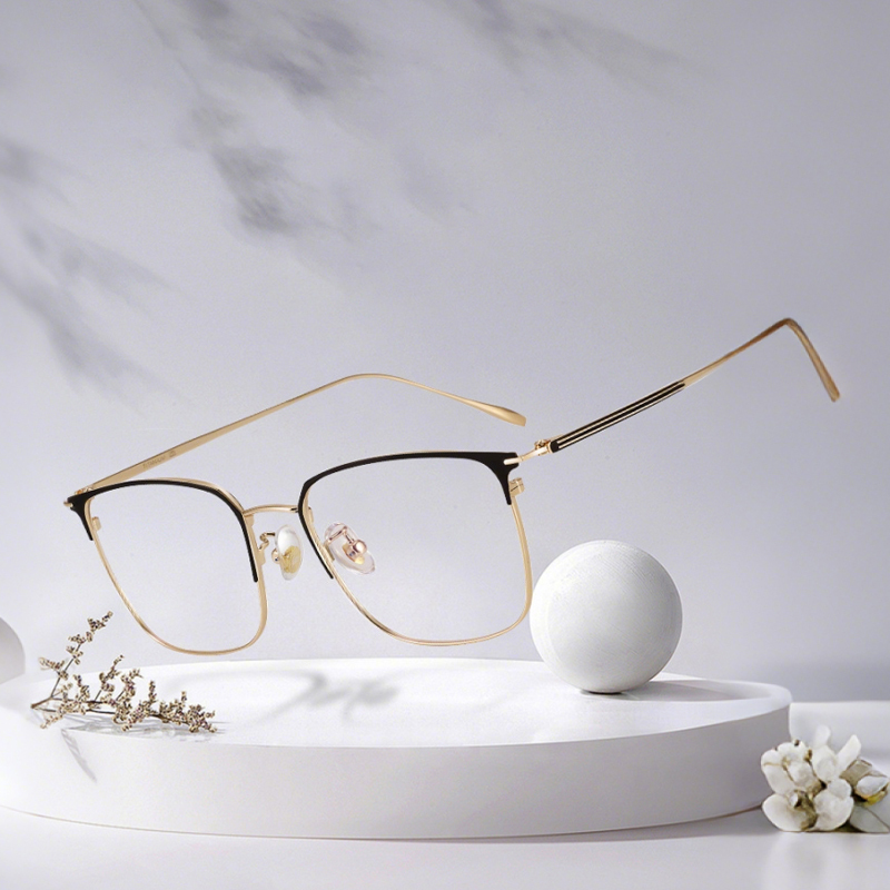 Give your look a warm touch with soft neutrals. This browline frame is crafted from Titanium, making it both ultra-lightweight and durable, while also being resistant to corrosion. With adjustable nose pads and flexible temple arms, you can experience all-day comfort.