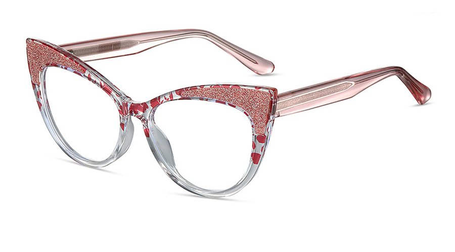 Show your sophisticated side in these modern cat-eye glasses. Made from glossy hand-polished acetate, the frame features a unique glitter pattern detail at the corners. Spring hinges and integrated nose pads add flexibility and comfort.