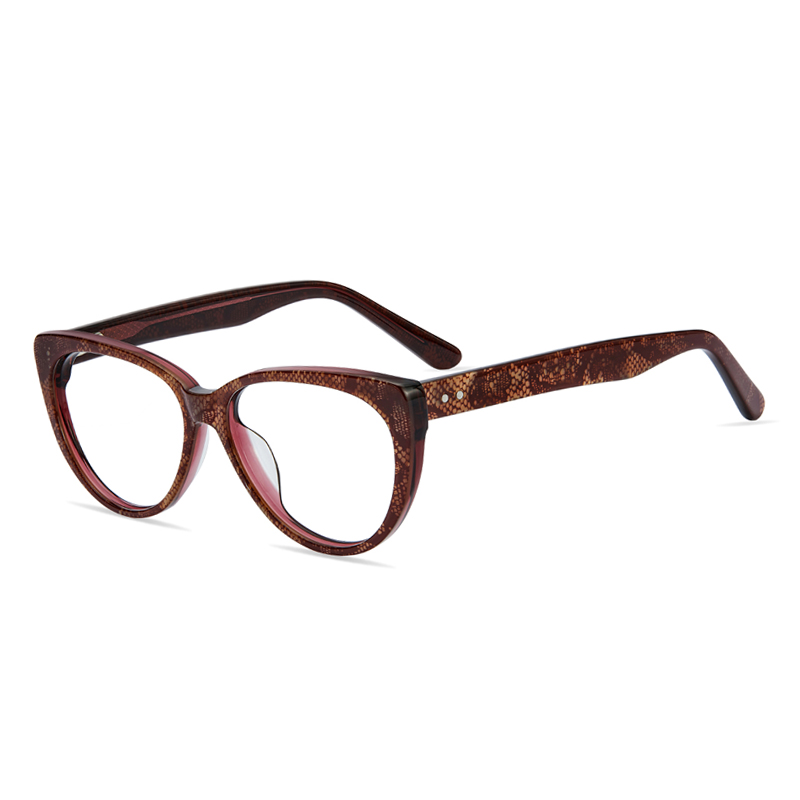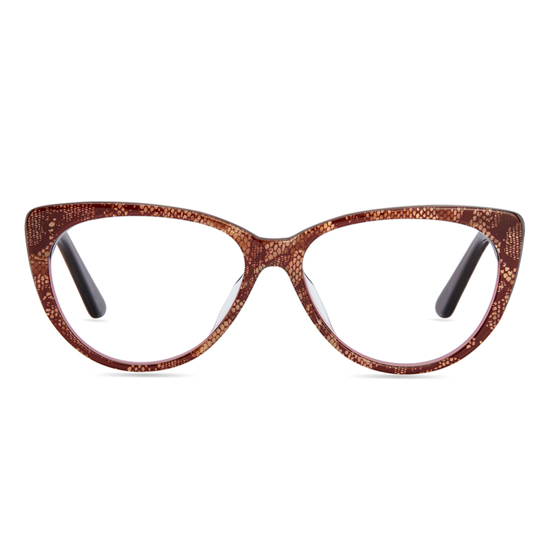 DESCRIPTIONRich retro flair, hand-polished acetate construction, and customized texture design. Iris is another pair of cat-eye glasses definitely for those with narrow faces (width of 116mm). Featuring durable spring hinges, it has great comfort and wearability.