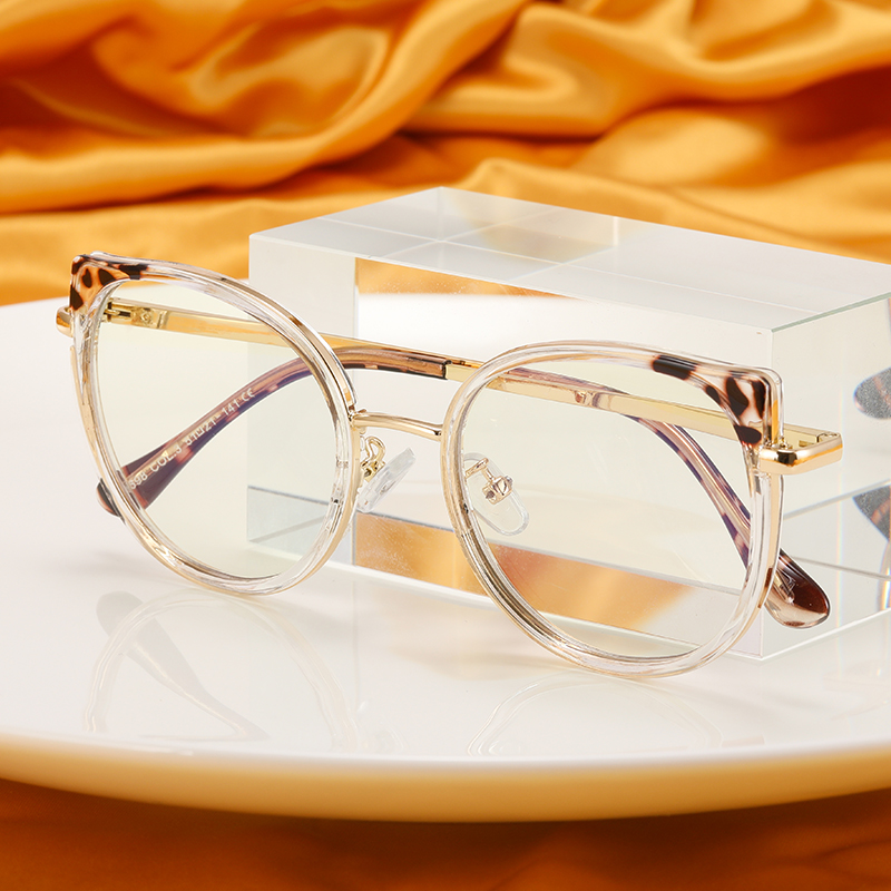 DESCRIPTIONShow your sophisticated side in these modern cat-eye glasses. This frame is made from glossy TR90 & metal and features a simplistic, surprisingly comfortable design. For added comfort, the flexible frame is fitted with spring hinges and adjustable nose pads.