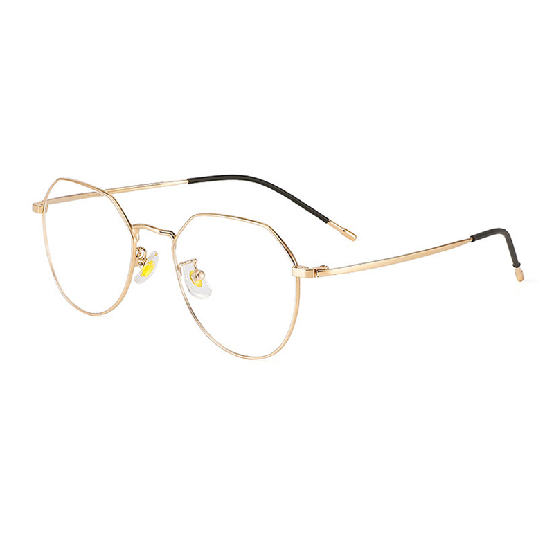 Channel vintage vibes with these chic irregular glasses. Made from Titanium metal, this ultra-lightweight fashion frame will add flare to any outfit and can be worn all day. The flexible temple arms can be bent 360 degrees without deformation. Adjustable nose pads provide a comfortable fit.