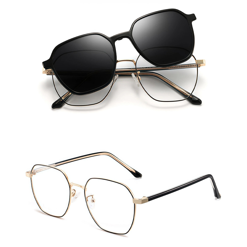 Switch effortlessly between clear vision and sun protection with our innovative magnetic 2-in-1 system. The sleek square-frame prescription glasses feature instant-attach polarized TAC clip-on – no tools required. Perfect for driving, outdoor activities, or everyday style.