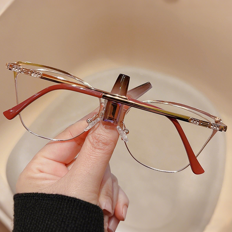DESCRIPTIONThese cat-eye glasses will give your look a sophisticated touch. The wide metal frame features a cut-out detail on the outer corners. Spring hinges and adjustable nose pads provide a comfortable fit.