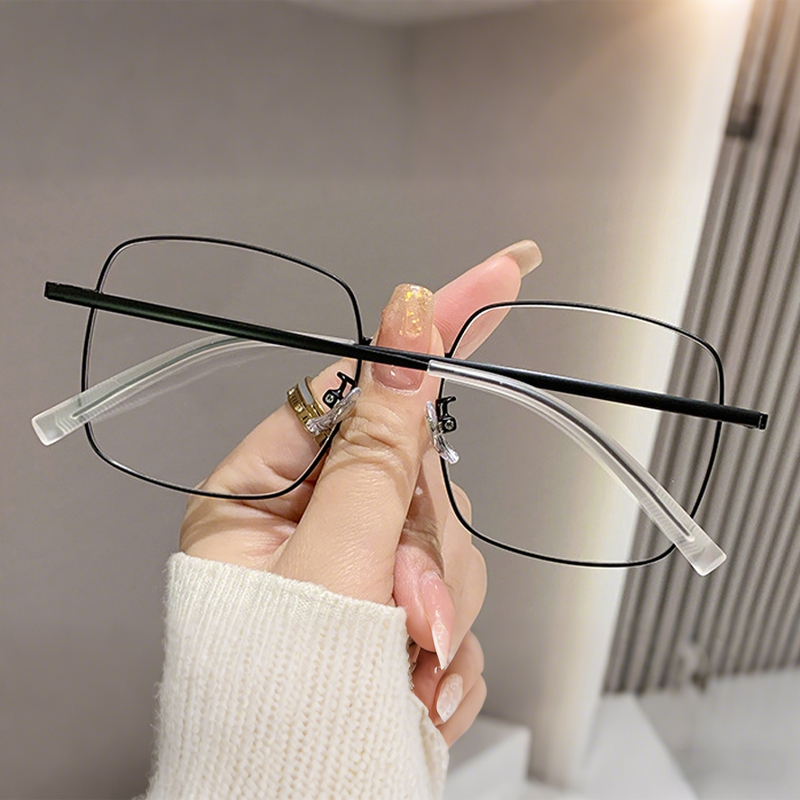 DESCRIPTIONAdd a bit of whimsy to your eyewear wardrobe with these oversized metal square glasses. The slender metal arms are completed with soft plastic arm tips, making this look demur and simple. They also come with adjustable nose pads to ensure maximum comfort.