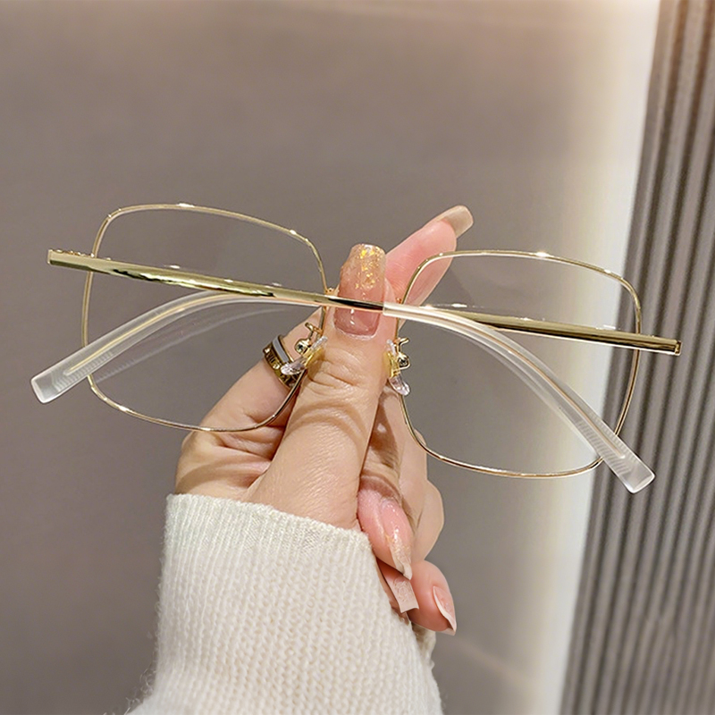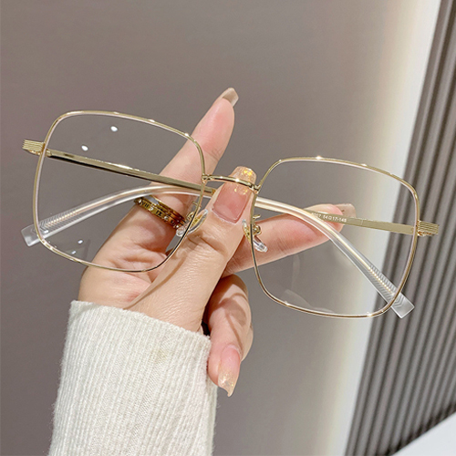 DESCRIPTIONAdd a bit of whimsy to your eyewear wardrobe with these oversized metal square glasses. The slender metal arms are completed with soft plastic arm tips, making this look demur and simple. They also come with adjustable nose pads to ensure maximum comfort.