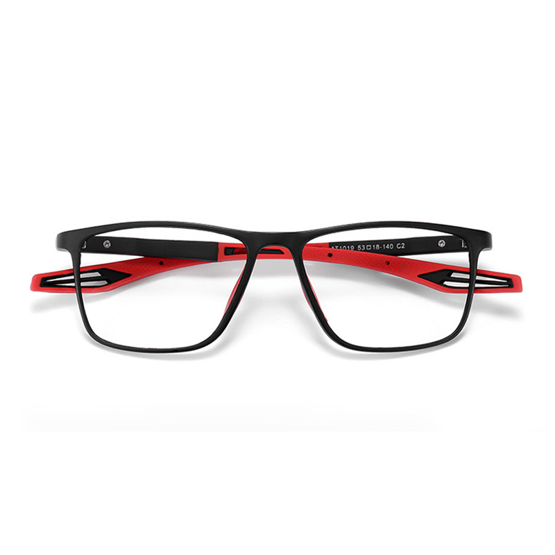 DESCRIPTIONThese sports eyeglasses are both lightweight and durable. This rectangular frame is crafted from flexible TR90 material, which provides anti-oxidant properties and is resistant to sweat. Flexible silicone temples and nose pads make you more comfortable during sports.