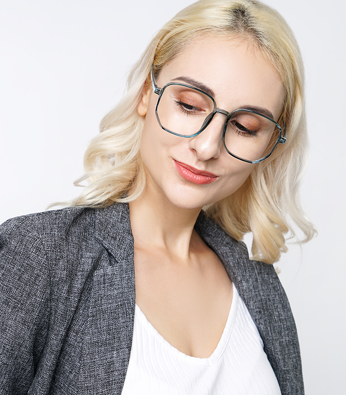 DESCRIPTIONKijana brings classic eyewear design and modern flair together to create a timeless style for the ages. This large-sized lens frame's interesting Clear Blue hue and double pairs of stub accents on temple arms are its most eye-catching features. It is also available in Matte Clear and striking ORANGE.
