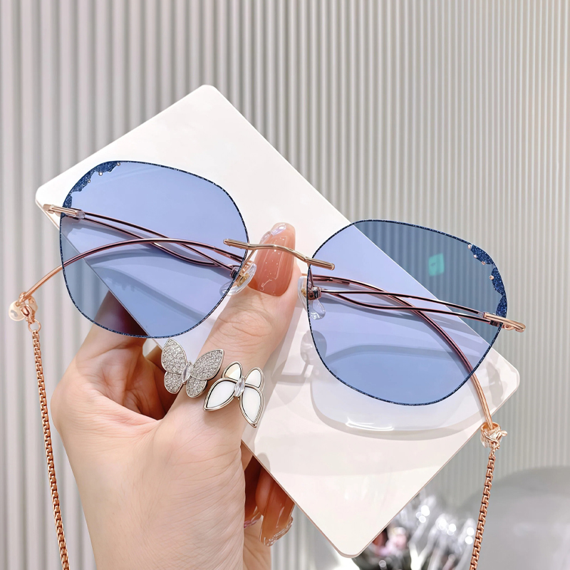 This fabulous frame feature doubles wavy metal temples with delicate chains for a retro look. The rhinestone details on the irregular lens edges are very eye-catching. Premium metal material and adjustable nose pads make them super light and comfortable.