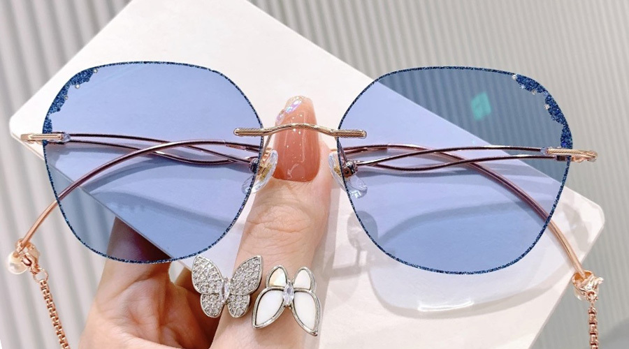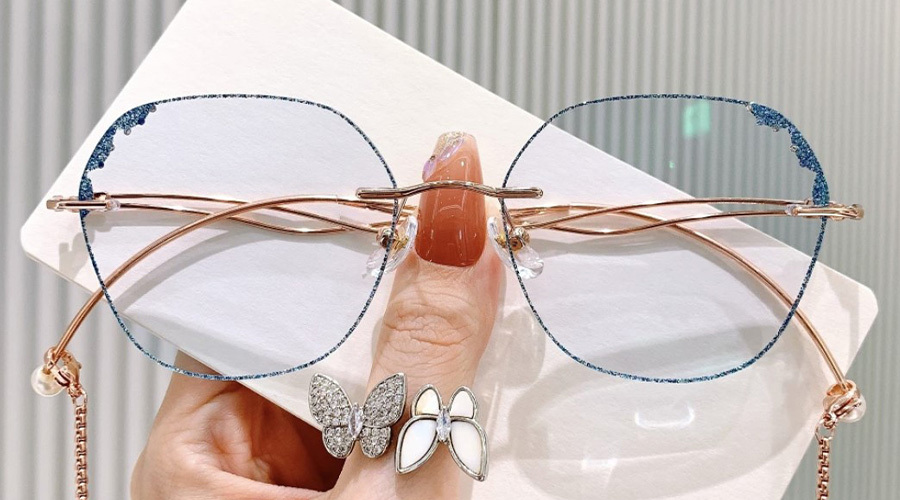 This fabulous frame feature doubles wavy metal temples with delicate chains for a retro look. The blue rhinestone details on the irregular lens edges are very eye-catching. Premium metal material and adjustable nose pads make them super light and comfortable.