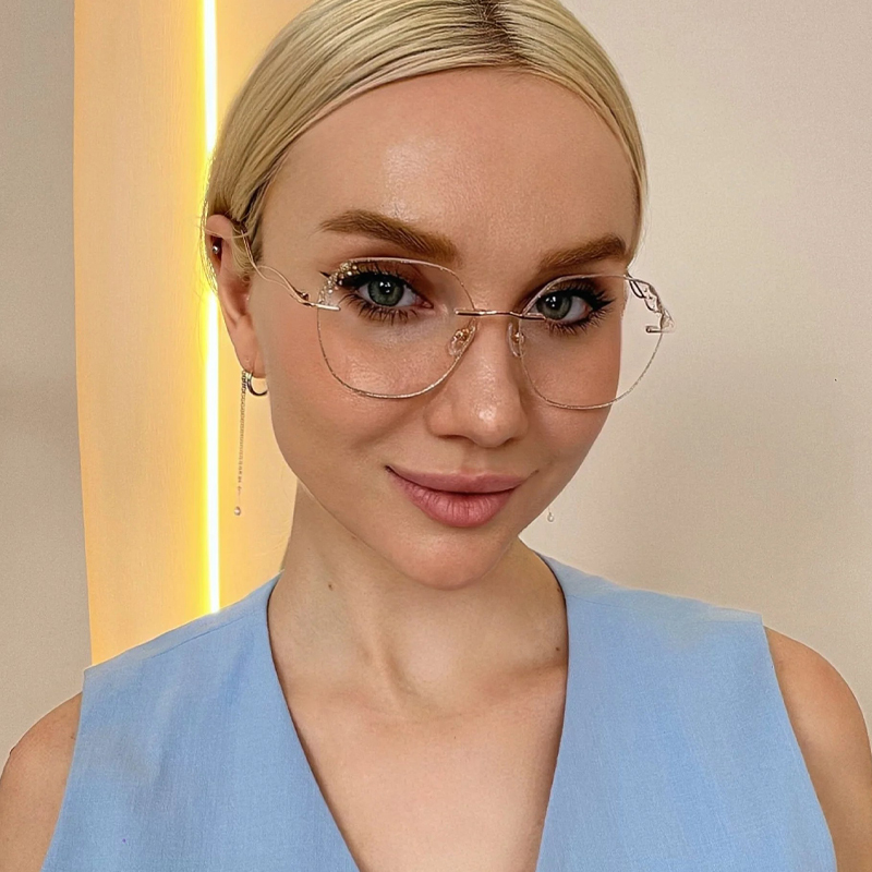 DESCRIPTIONThis fabulous frame feature doubles wavy metal temples with delicate chains for a retro look. The rhinestone details on the irregular lens edges are very eye-catching. Premium metal material and adjustable nose pads make them super light and comfortable.