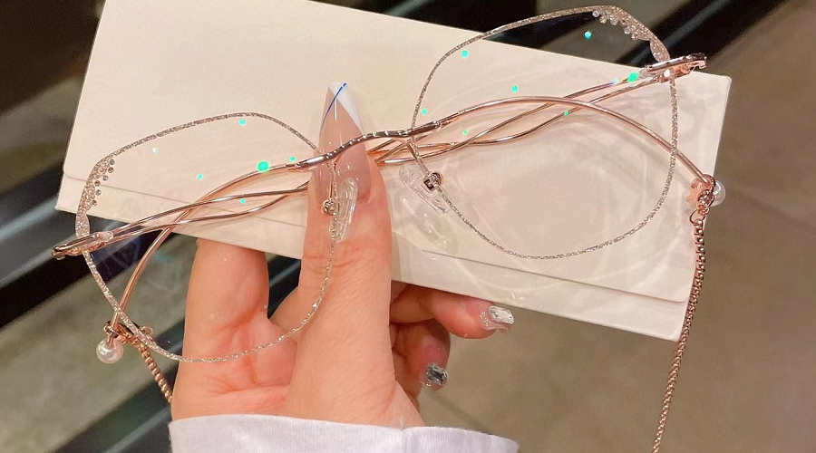 This fabulous frame feature doubles wavy metal temples with delicate chains for a retro look. The rhinestone details on the irregular lens edges are very eye-catching. Premium metal material and adjustable nose pads make them super light and comfortable.