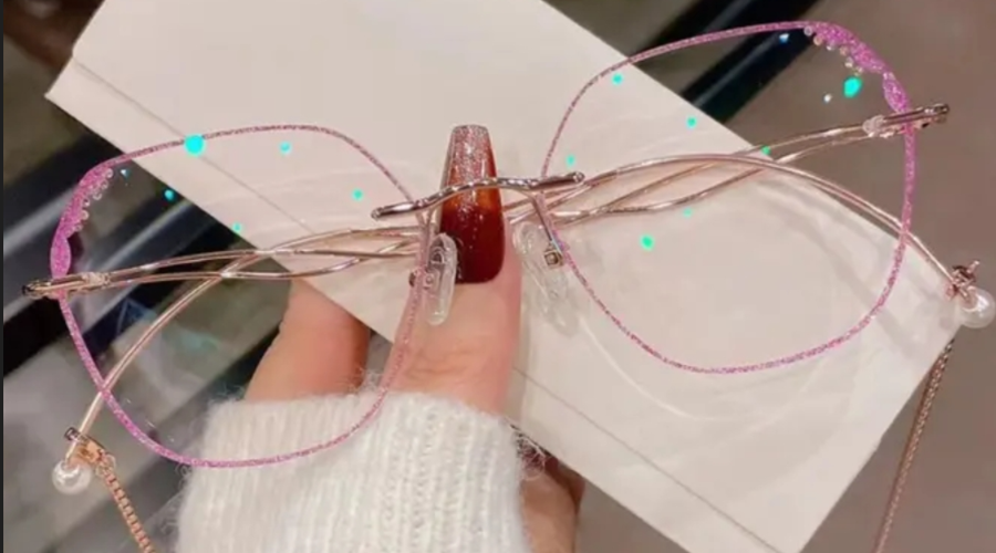 Photochromic Purple+Anti-Blue-Light Lenses: These rimless glasses feature Superflex lenses for impact resistance. Indoors, they are clear anti-blue-light glasses that block harmful blue light from digital screens. Outdoors, the lenses will change color from clear to purple and block UV rays.