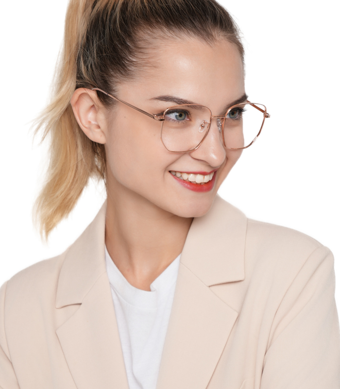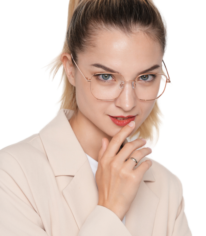 DESCRIPTIONLinda's smooth curves and retro square shape are here to blow you away. Made with Titanium and metal, these glasses are durable and wear-resisting. The wide frame features adjustable nose pads for a comfortable fit.