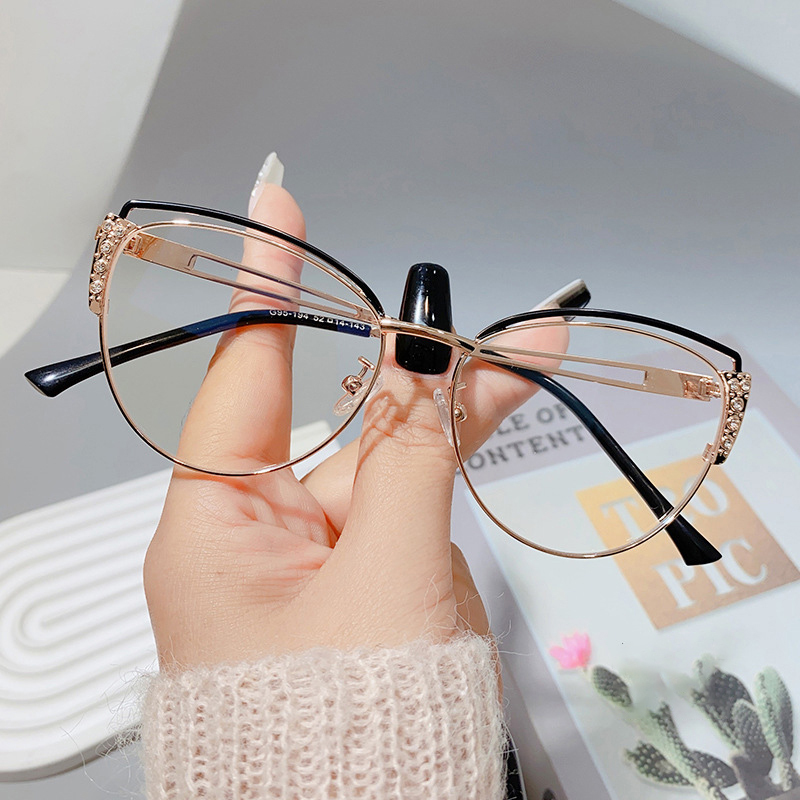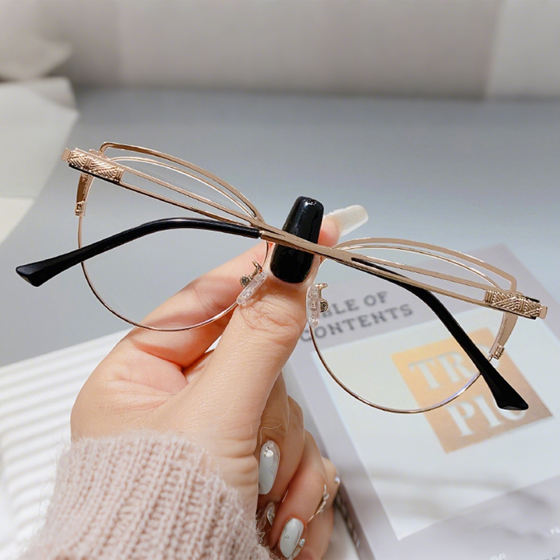 DESCRIPTIONExpress your unique side with these one-of-a-kind cat-eye glasses. Made from premium metal material, this frame features a surprisingly browline design. Adjustable nose pads make you enjoy all-day comfort.