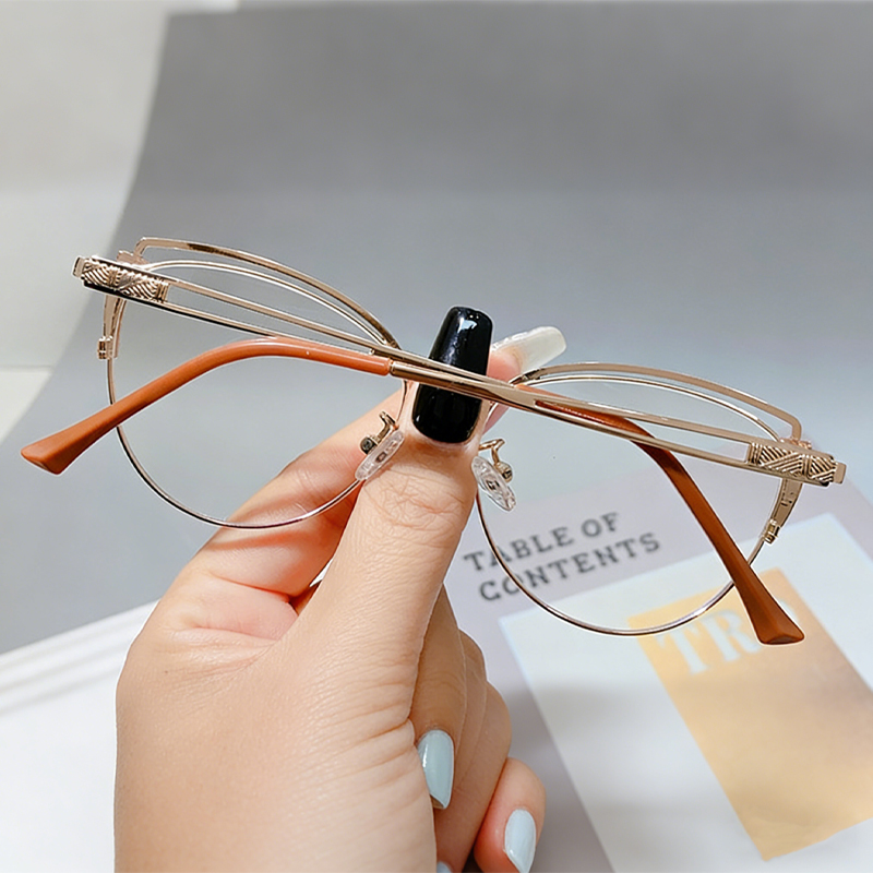 DESCRIPTIONExpress your unique side with these one-of-a-kind cat-eye glasses. Made from premium metal material, this frame features a surprisingly browline design. Adjustable nose pads make you enjoy all-day comfort.
