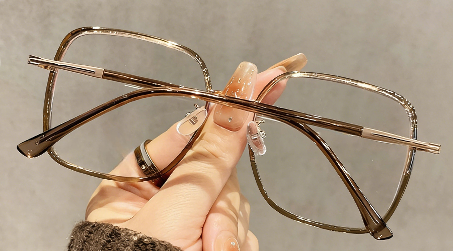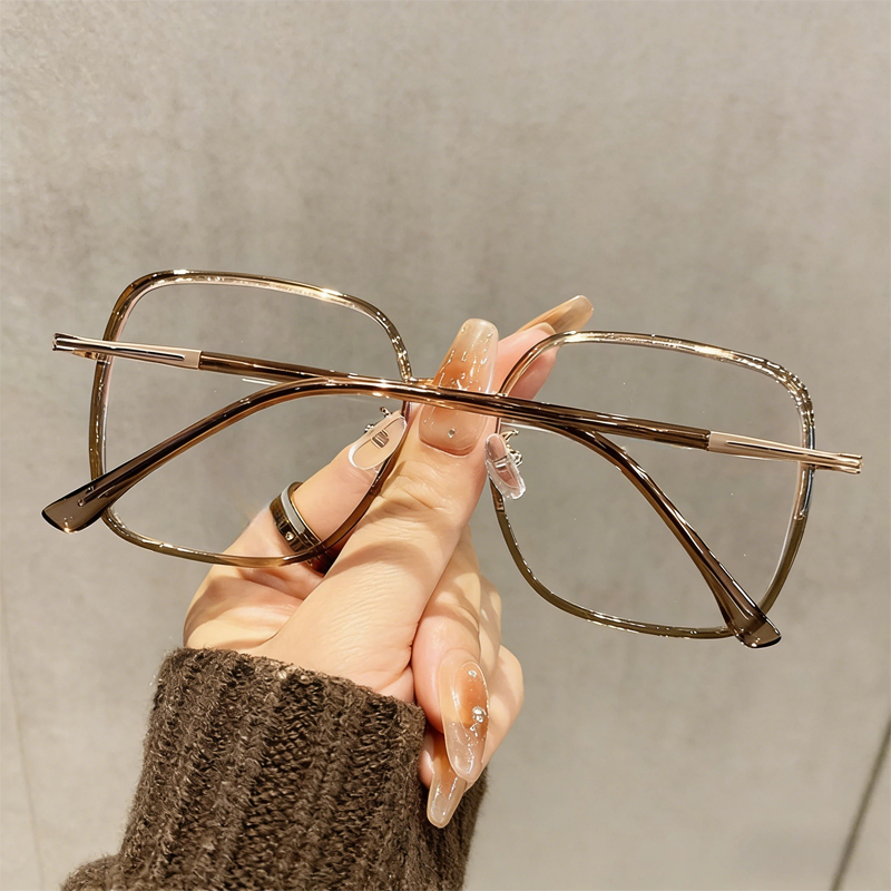 DESCRIPTIONThese stylish oversized square frames are crafted from a lightweight TR + metal blend (only 16.4g), featuring adjustable nose pads for a customized, comfortable fit. The sleek metallic finish and subtle decorative details elevate your everyday look with a touch of modern elegance.