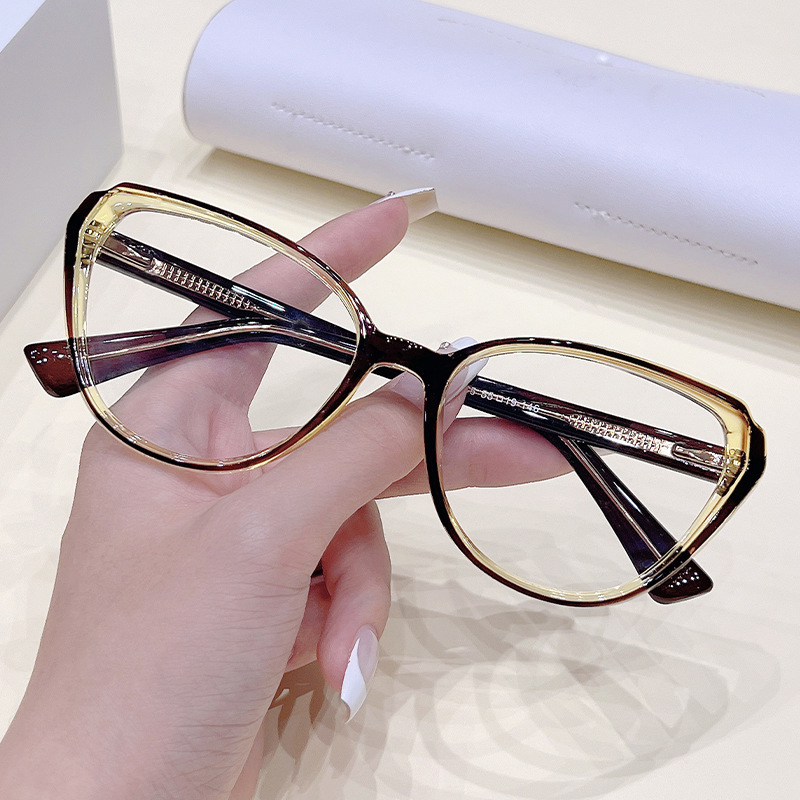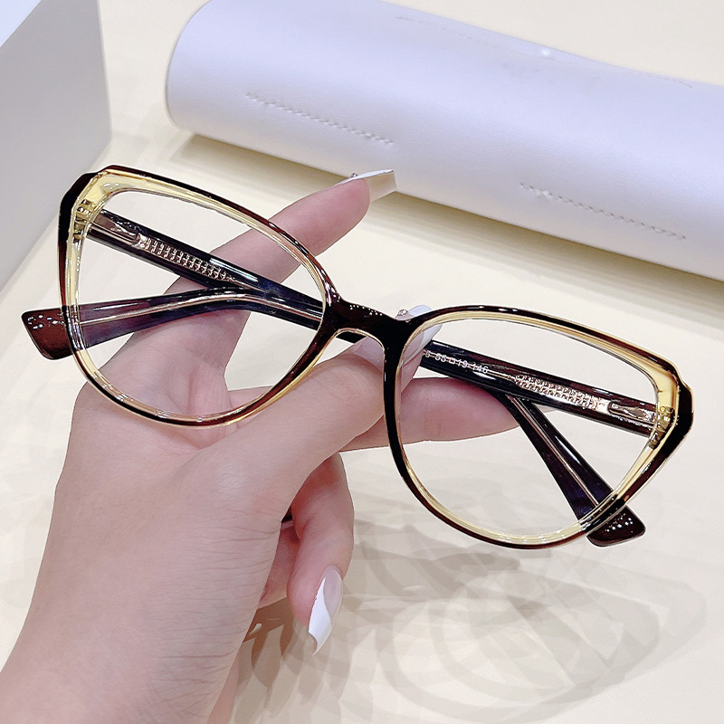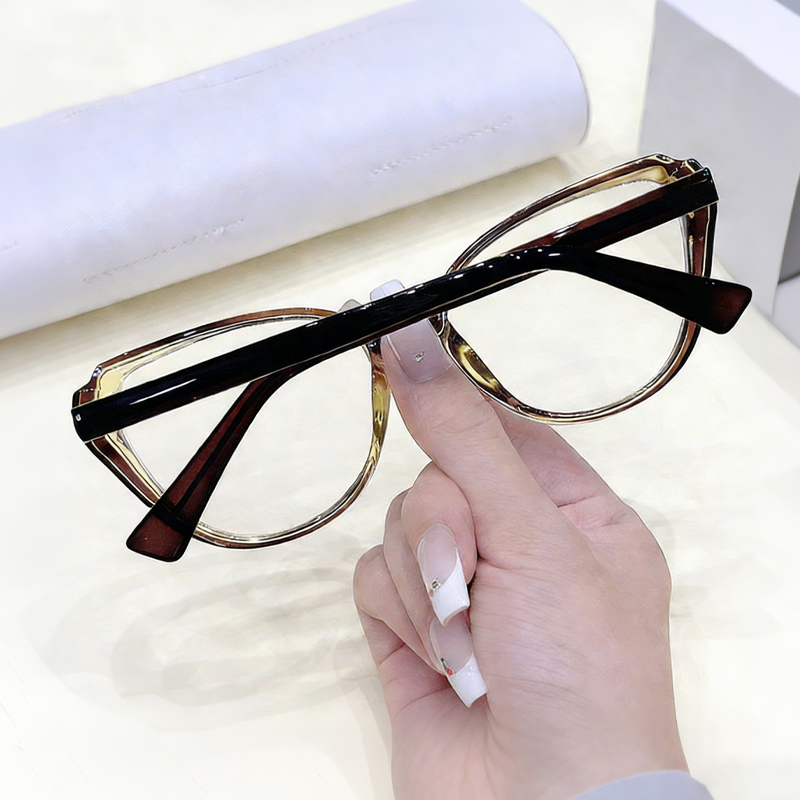 These stylish cat-eye glasses are crafted from lightweight TR90 material, featuring a chic two-tone dual-color frame design, integrated nose pads for all-day comfort, and spring hinges for a flexible, secure fit. The retro-inspired silhouette adds a touch of sophistication, making them perfect as a fashion statement or functional eyewear.