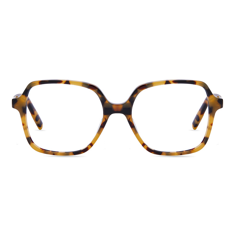 DESCRIPTIONMade of high-quality acetate and in simple modern style, Moco, a special square frame with quality spring hinges, are durable and anti-resisting. The diamond-shaped ornaments on the metal part of the temple arms, make this frame even more striking.
