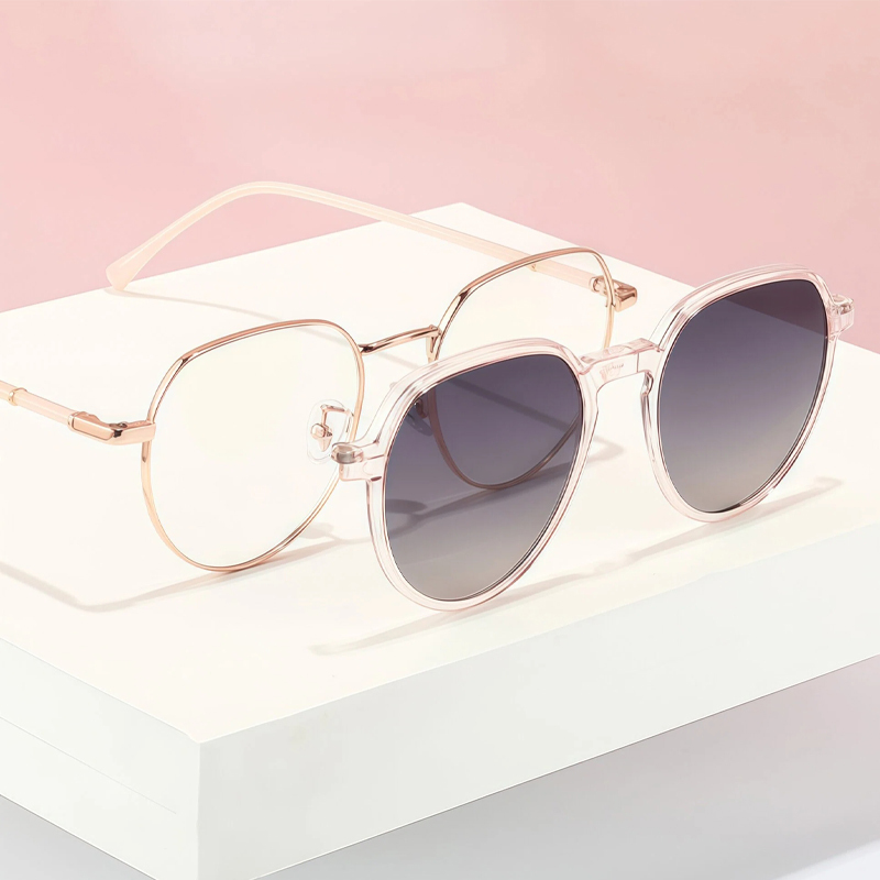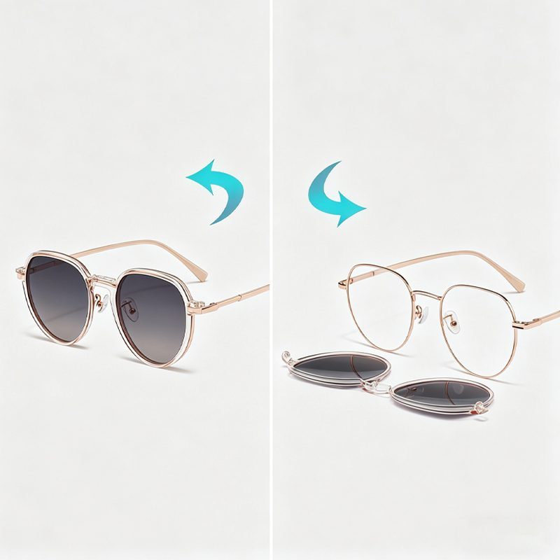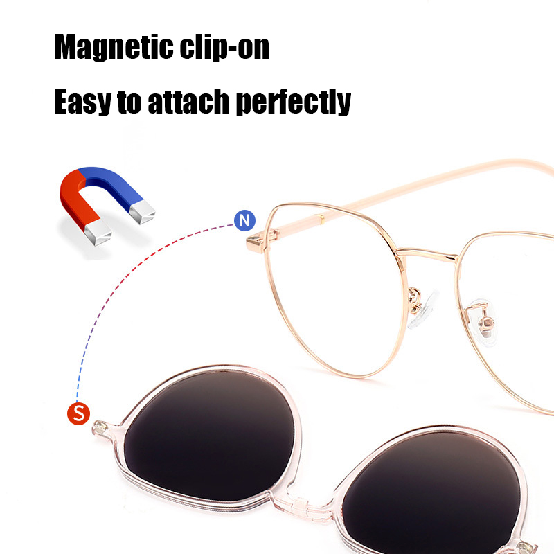 DESCRIPTIONDual-purpose design serves as both regular glasses and sunglasses in one frame. Lightweight and ultra-comfortable to wear all day long.Built with strong magnetic suction for seamless, gap-free fitting.Innovative clip-on design switches in seconds, with a hidden loop fix for an invisible and snug fit.
