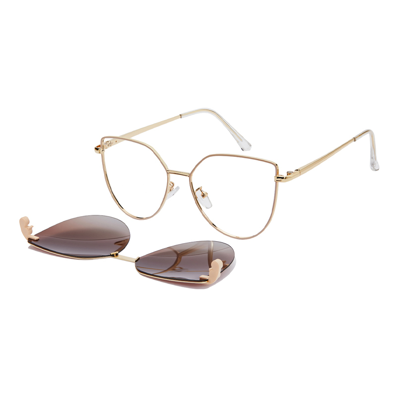 DESCRIPTIONAs a geometric frame, Nemesis has two different colored rims. The golden rim covers the top edge of the clip-on to make Nemesis become browline sunglasses when putting on the clip-on lenses. The timeless metal-made frame and the clip-on structure complete an edgy look to Nemesis.