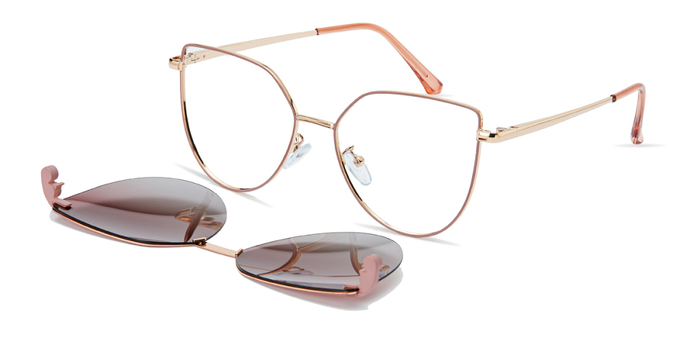As a geometric frame, Nemesis has two different colored rims. The golden rim covers the top edge of the clip-on to make Nemesis become browline sunglasses when putting on the clip-on lenses. The timeless metal-made frame and the clip-on structure complete an edgy look to Nemesis.