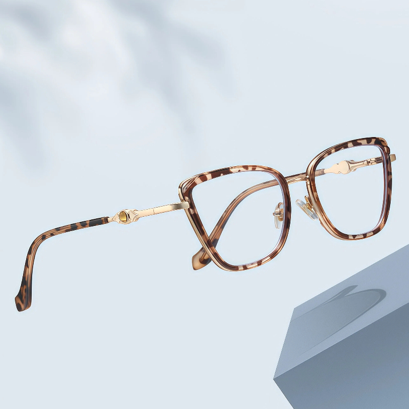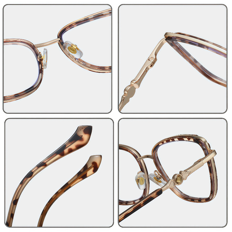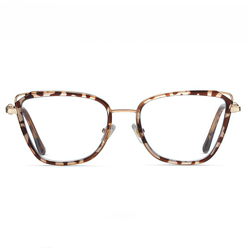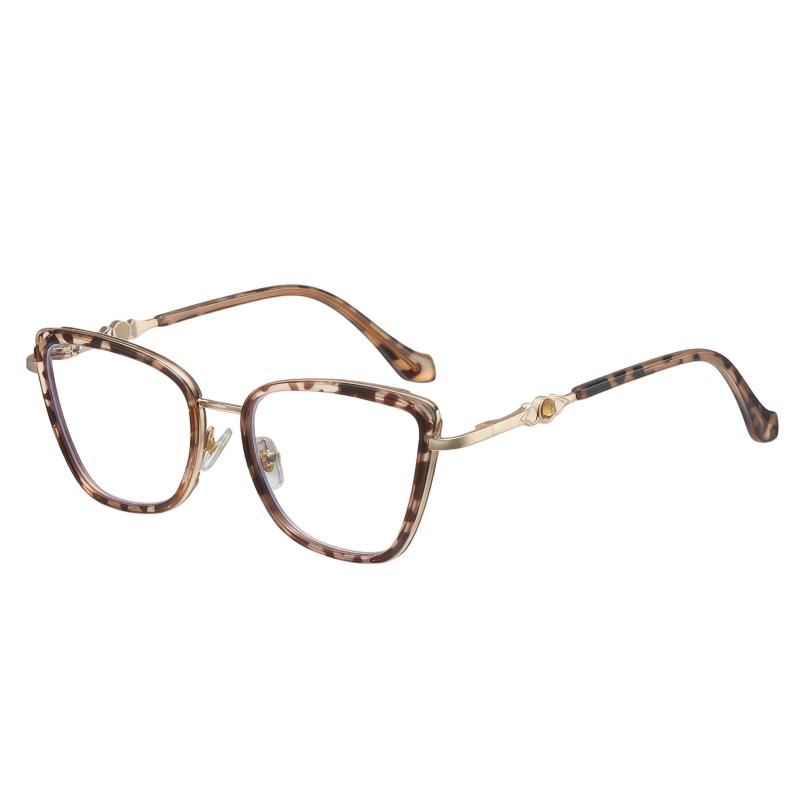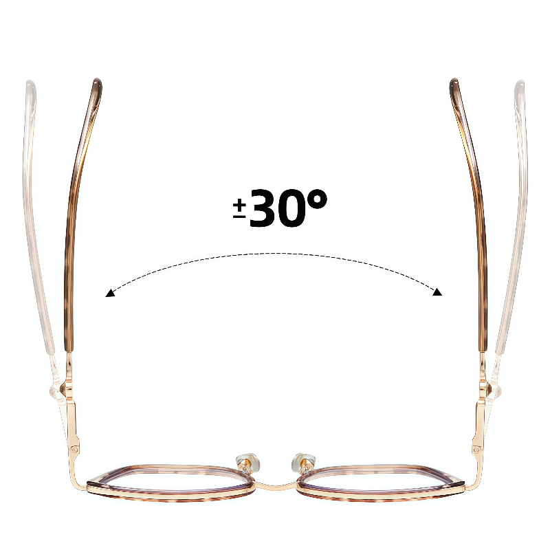 These elegant butterfly glasses combine a lightweight TR90 frame with premium metal accents, featuring adjustable nose pads for a tailored fit and spring hinges for flexible all-day wear.