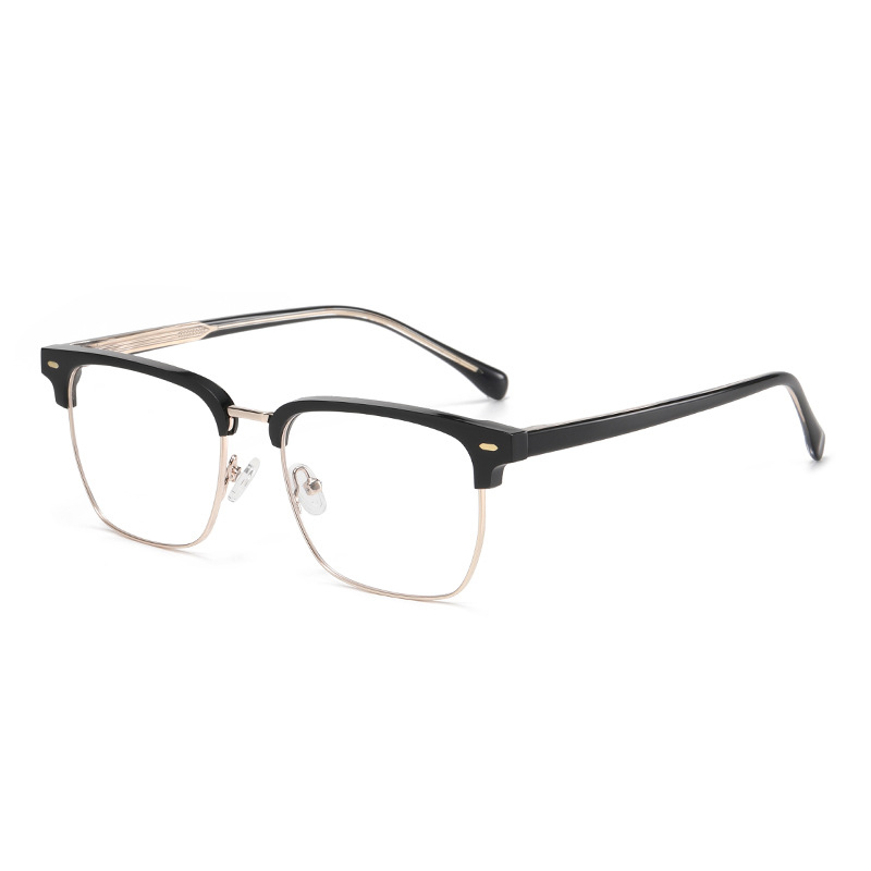These Browline eyeglasses definitely have a classic vintage feel. Crafted from acetate & metal, this frame has enhanced durability and comfort. Adjustable nose pads provide a comfortable fit.