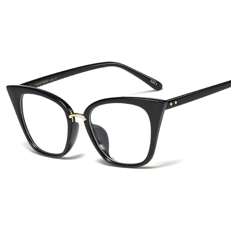 Try these chic cat-eye glasses on today! Featuring rivets on arms, this durable frame is both trendy and comfortable. Made from high-quality materials, it pairs perfectly with any outfit. Suitable for all kinds of faces. The arched gold nose bridge only adds additional charm.