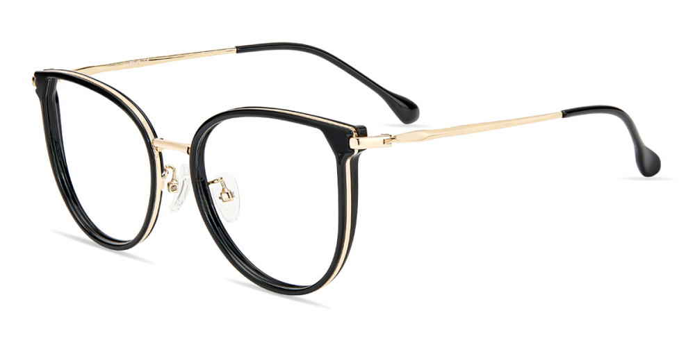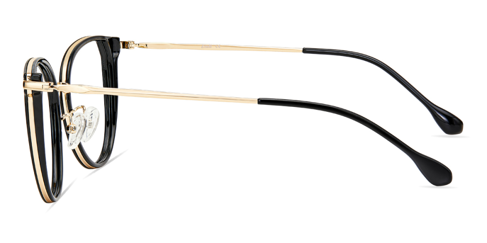 Made of TR, comfortable, lightweight. Clear Pallas is one of the symbolic embracers of chic, sleek style. The cat-eye shape adds gentle charm while the slim mellow golden temple arms make it much posher.